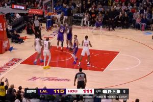 GIF-詹姆斯近乎平筐的空接炸扣!