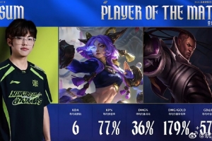 体育资讯4月17日讯 在刚刚结束的LPL的比赛中,Assum两局合砍19/4/11的战绩,拿下NIP对阵JDG系列赛MVP